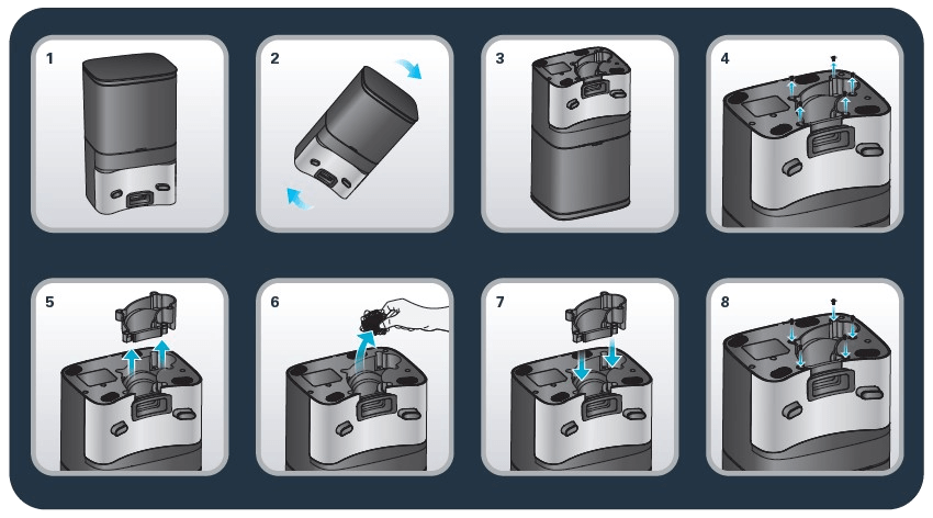 • À l'aide d'un tournevis, retirez les 5 vis qui maintiennent le capot du conduit à poussière et retirez-le.