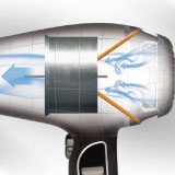 3 Pour finir, le sèche-cheveux Silence est doté d’ouvertures latérales à l’arrière, qui dispersent le flux d’air, réduisant ainsi le bruit par rapport à un flux direct.